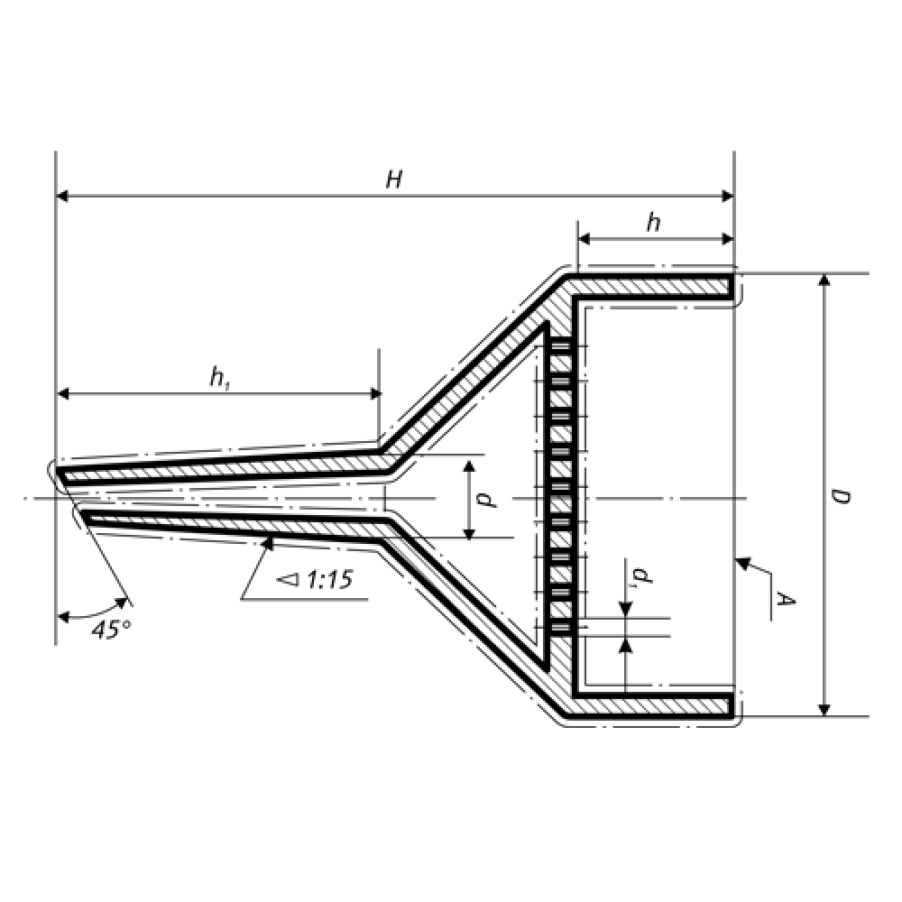 | D, мм | 65±3 | 80±3 | 100±5 | 130±5 | 175±8 | 215±10 |