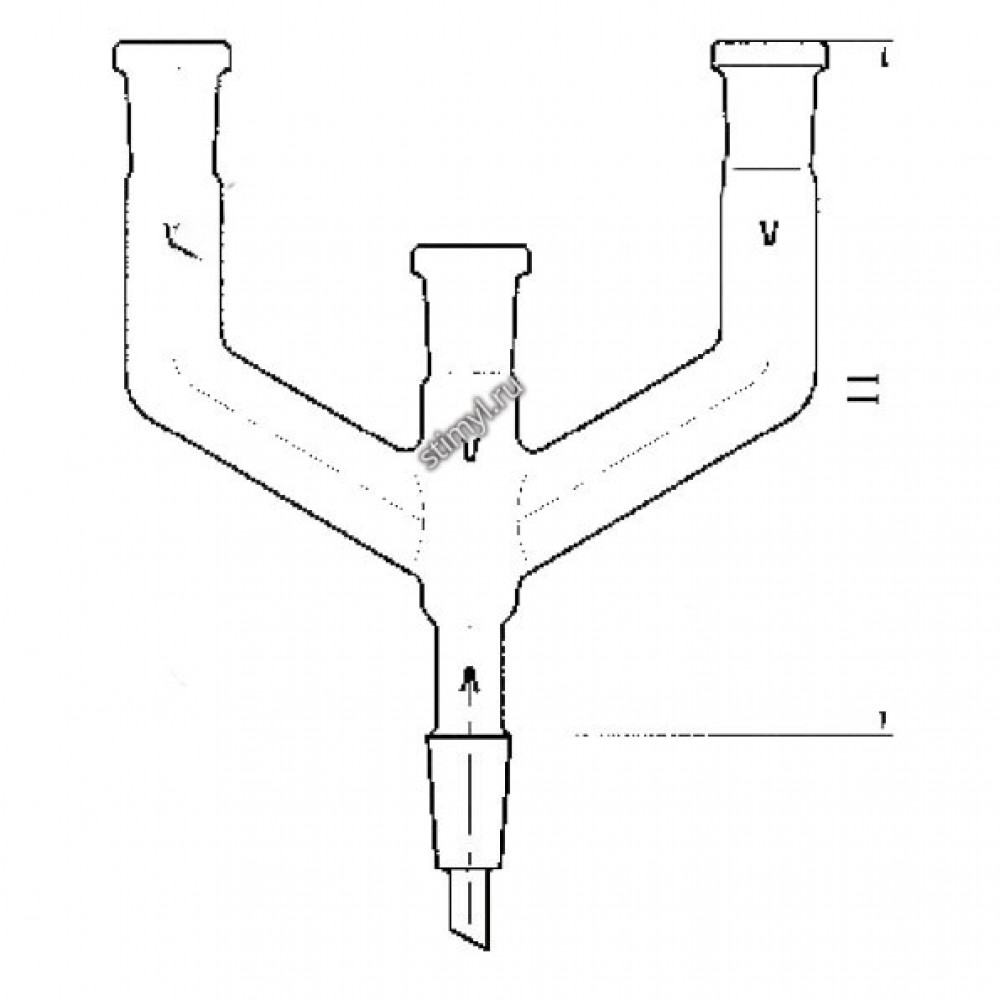 Переход с тремя параллельными горловинами П3П применяется в качестве соединительного элемента для сборки приборов, аппаратов и установок при переходе от одного конуса к другому. Изготавливаются из стекла Симакс ЧСН ИСО 3585.