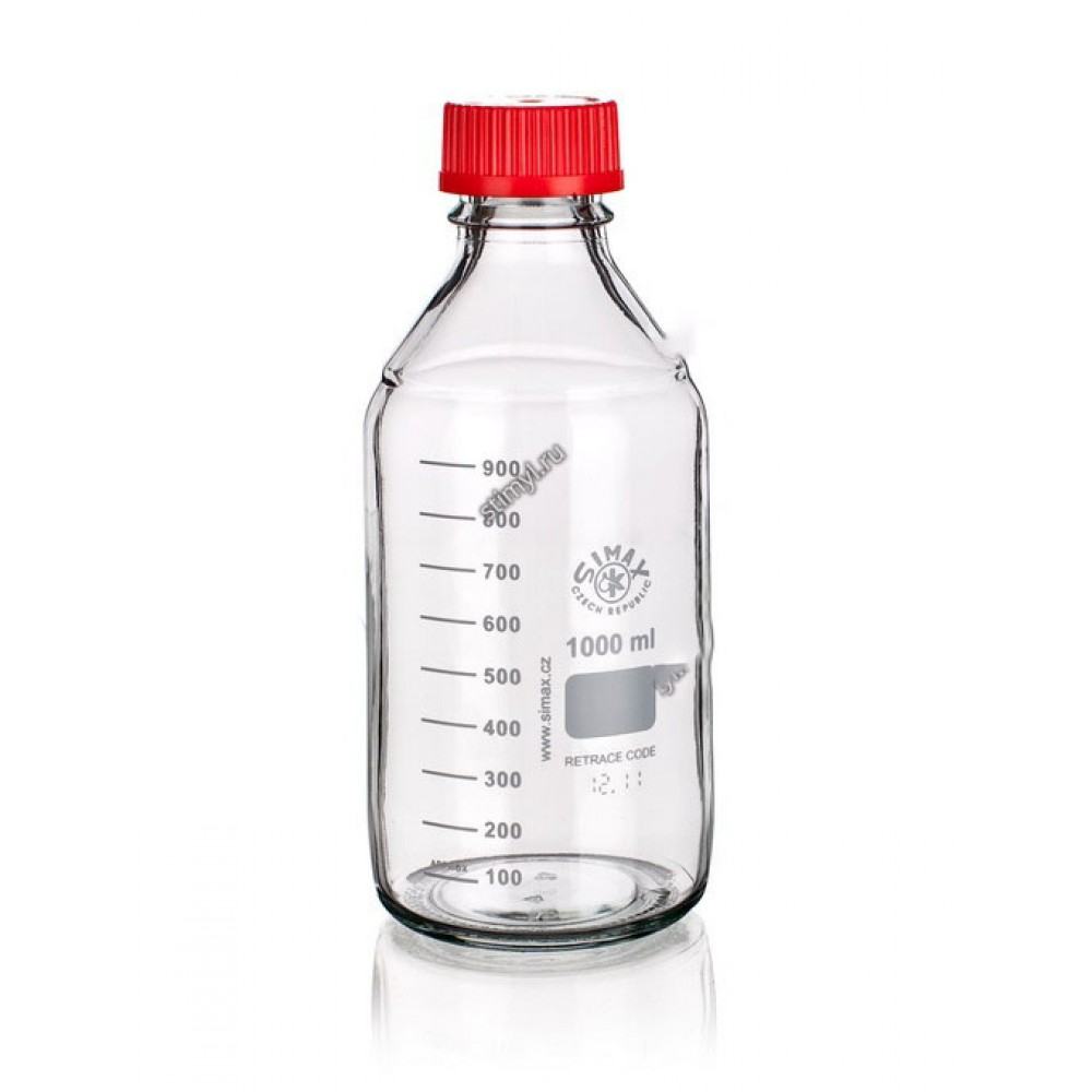 Банка для реактивов из прозрачного стекла SIMAX с винтовой пластмассовой крышкой используется для хранения химических жидкостей.