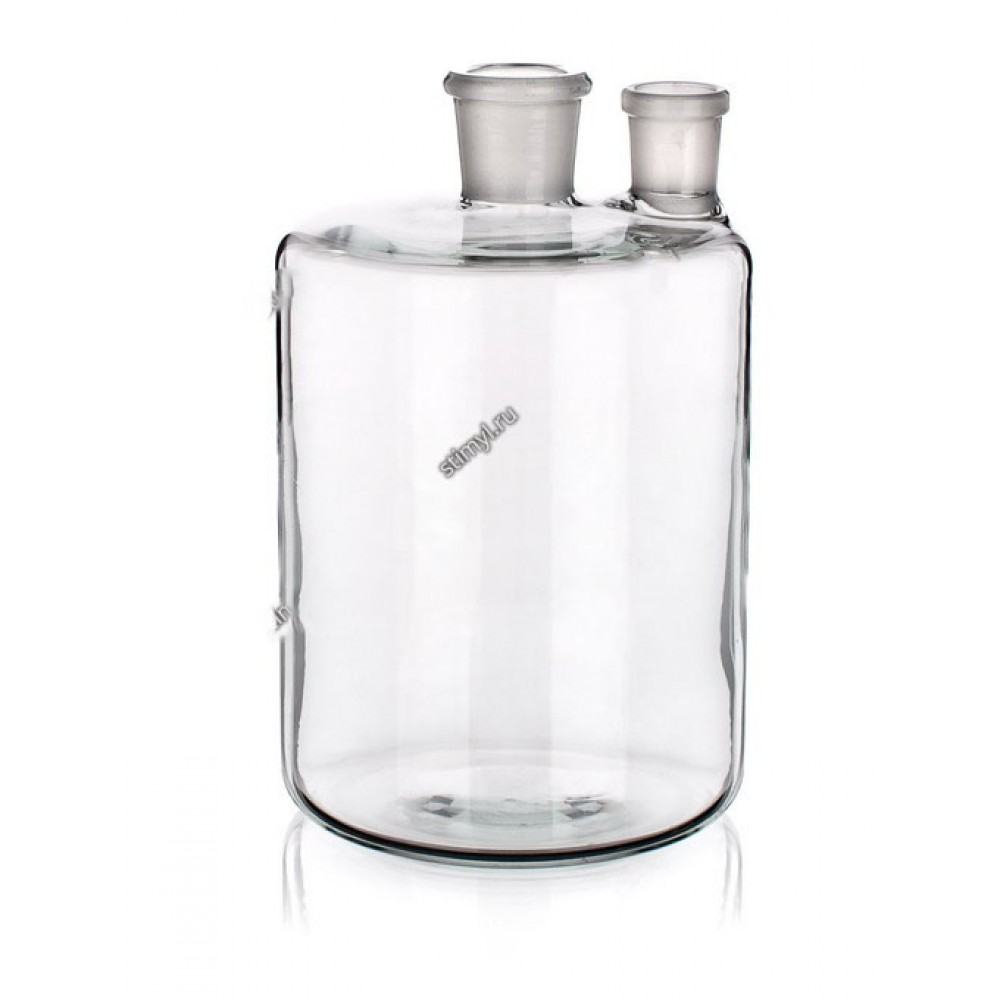 Склянка с тубусом (Бутыль Вульфа с 2-мя горловинами без крана) предназначена для отбора и хранения раствора и газа. Может использоваться как предохранительный сосуд перед водоструйным насосом.