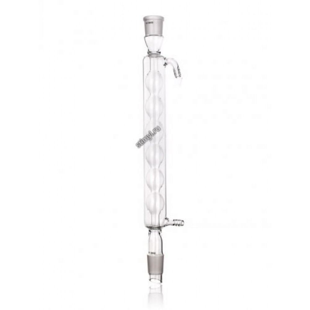 Прибор для конденсации пара при помощи охлаждающей среды, чаще всего воды. Холодильники устанавливают либо наклонно, когда нужно собрать конденсат в приемнике, либо вертикально для возврата конденсата в колбу с кипящей жидкостью. В этом случае холодильник называют обратным. Является типичным обратным холодильником.Благодаря большей поверхности охлаждения холодильники Аллина короче холодильников Вейгеля-Либиха. Через шариковый холодильник удобно вставлять ось мешалки, вводить в реактор различные вещества, хорошо смываемые в колбу конденсатом и подогреваемые им.Обычно число шариков у таких холодильников колеблется от 3 до 8. По эффективности в качестве обратного холодильника холодильник Аллина уступает холодильнику Димрота, выдерживающему значительные перепады температур.Во избежание захлебывания, когда конденсат не успевает стекать обратно в колбу с кипящей жидкостью, обратный шариковый холодильник устанавливают в наклонном положении, но наклон не должен быть слишком большим, чтобы конденсат не скапливался в шарах.Скопление конденсата приводит к уменьшению эффективной охлаждающей поверхности холодильника.