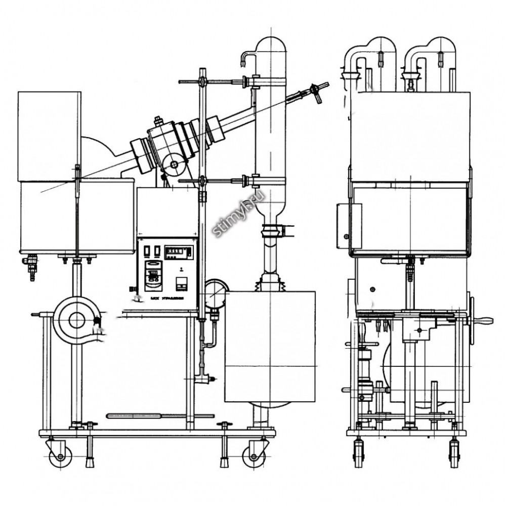 Испаритель ротационный ИР-10М предназначен для проведения физических и физико-химических процессов, сопряженных с быстрым удалением растворителей из растворов или суспензий органических и неорганических соединений путем пленочного испарения при нормальном и пониженном давлениях и контролируемых температурах. Возможны: перегонка термически нестойких веществ в мягких температурных условиях, перегонка смеси высоко-кипящих веществ, которую нельзя разделить обычной перегонкой из куба, дегазация жидкостей, выпаривание жидкостей, перегонка легко вспенивающихся веществ и т.п.В работе испарителя использован принцип обработки сырья в тонких пленках текущих жидкостей. Пленка жидкости образуется на внутренней поверхности вращающейся испарительной колбы, увеличивая площадь испарения и интенсифицируя процесс парообразования.За счет вращение одновременно устраняется вспенивание испаряемой жидкости.Применяется в химической, нефтехимической, химико-фармацевтической, медицинской и пищевой отраслях промышленности.