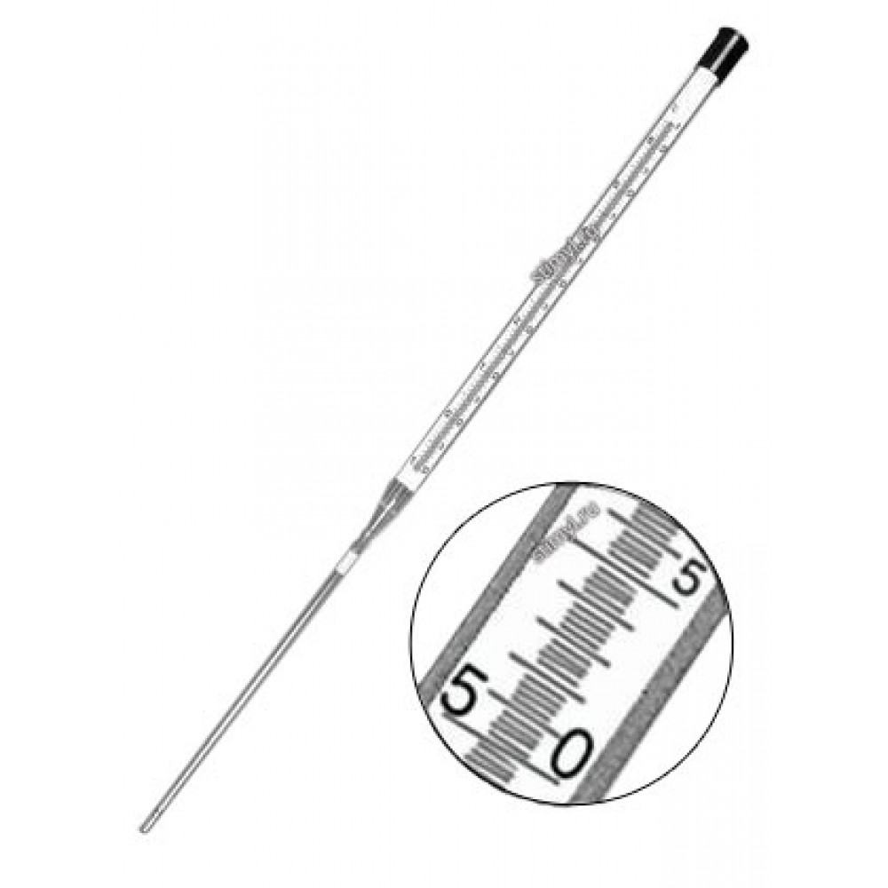 Термометр ТЛ-7А для бактериалогических термостатов предназначен для измерения температуры при работе на бактериологических термостатах. Термометр для бактериалогических термостатов. Термометр предназначен для измерения температуры при работе на бактериологических термостатах.Изготавливаются по ТУ25-11.1388-77 и ГОСТ 28498-90.Имеет «Сертификат об утверждении типа средств измерений».КонструкцияСтеклянный термометр с вложенной шкалой из молочного стекла.Длина верхней части термометра 385±10 мм, нижней части 240±10 мм.Диаметр оболочки: в.ч 16,5±0,5 мм, н.ч. 8±1 мм.
