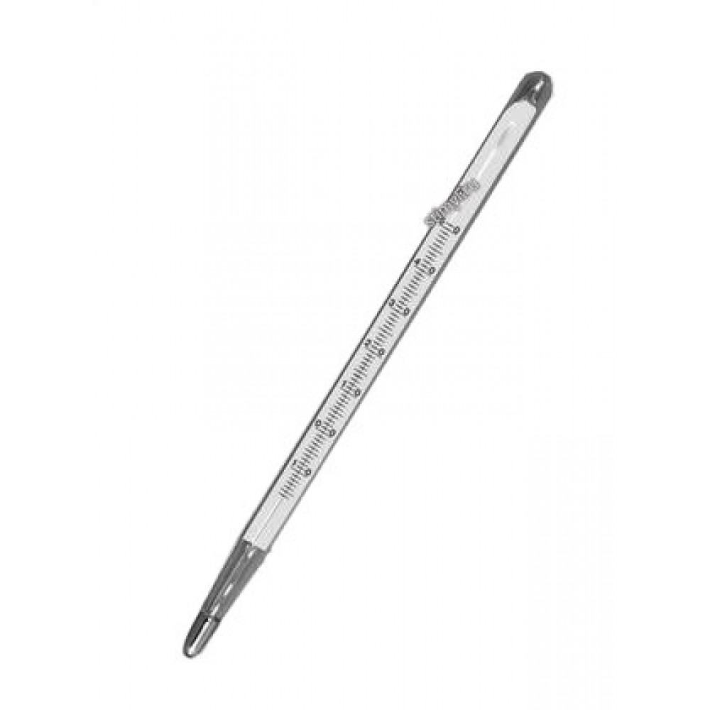 МаркаДиапазон измерения температуры, ºCЦена деления шкалы, ºCДлина термометра, ммТермом. жидкость