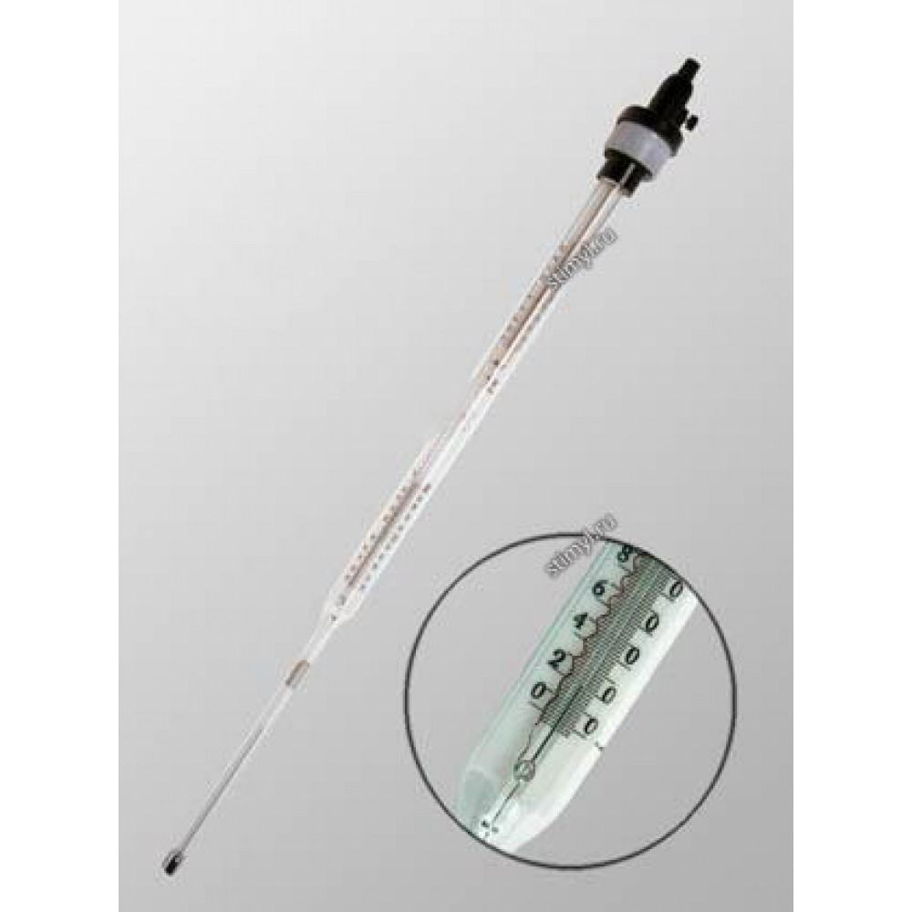 МаркаДиапазон измерения температуры, ºCЦена деления шкалы, ºCДлина термометра, ммТермом. жидкость